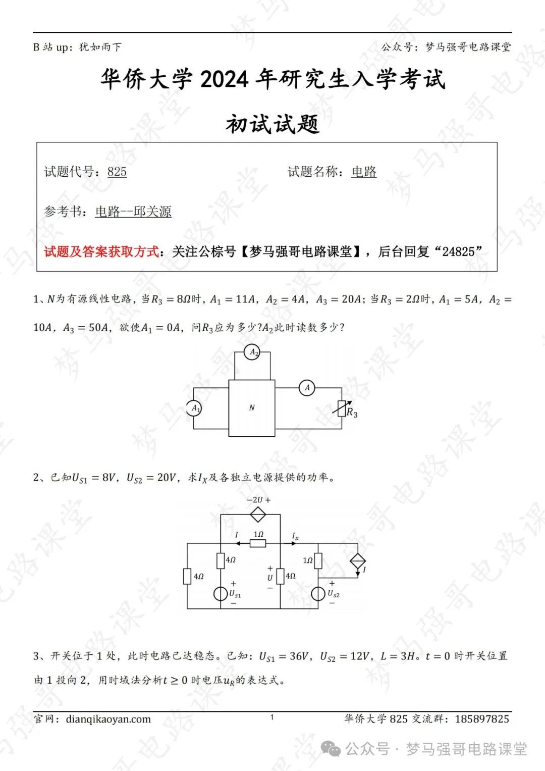 华侨大学825的考研交流q群:185897825,群内会不定期上传复习文件与各种资料,欢迎大家进群交流学习!